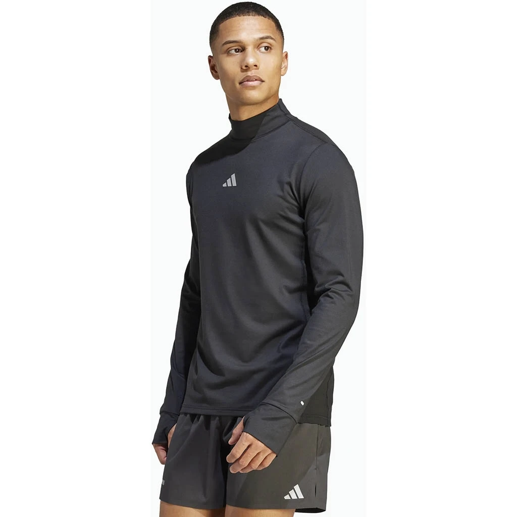 Le t-shirt de running Ultimate Long Sleeve de chez ADIDAS vous permet de vous entraîner par temps frais. Grâce à sa coupe slim, vous pouvez le porter seul ou sous une veste pour plus de confort. Dans tous les cas, il vous garde au chaud avec son col cheminée et ses passe-pouces aux poignets. La technologie AEROREADY évacue la transpiration pour vous maintenir au sec. Les empiècements en mesh sur les manches et les côtés assurent une respirabilité optimale kilomètre après kilomètre.