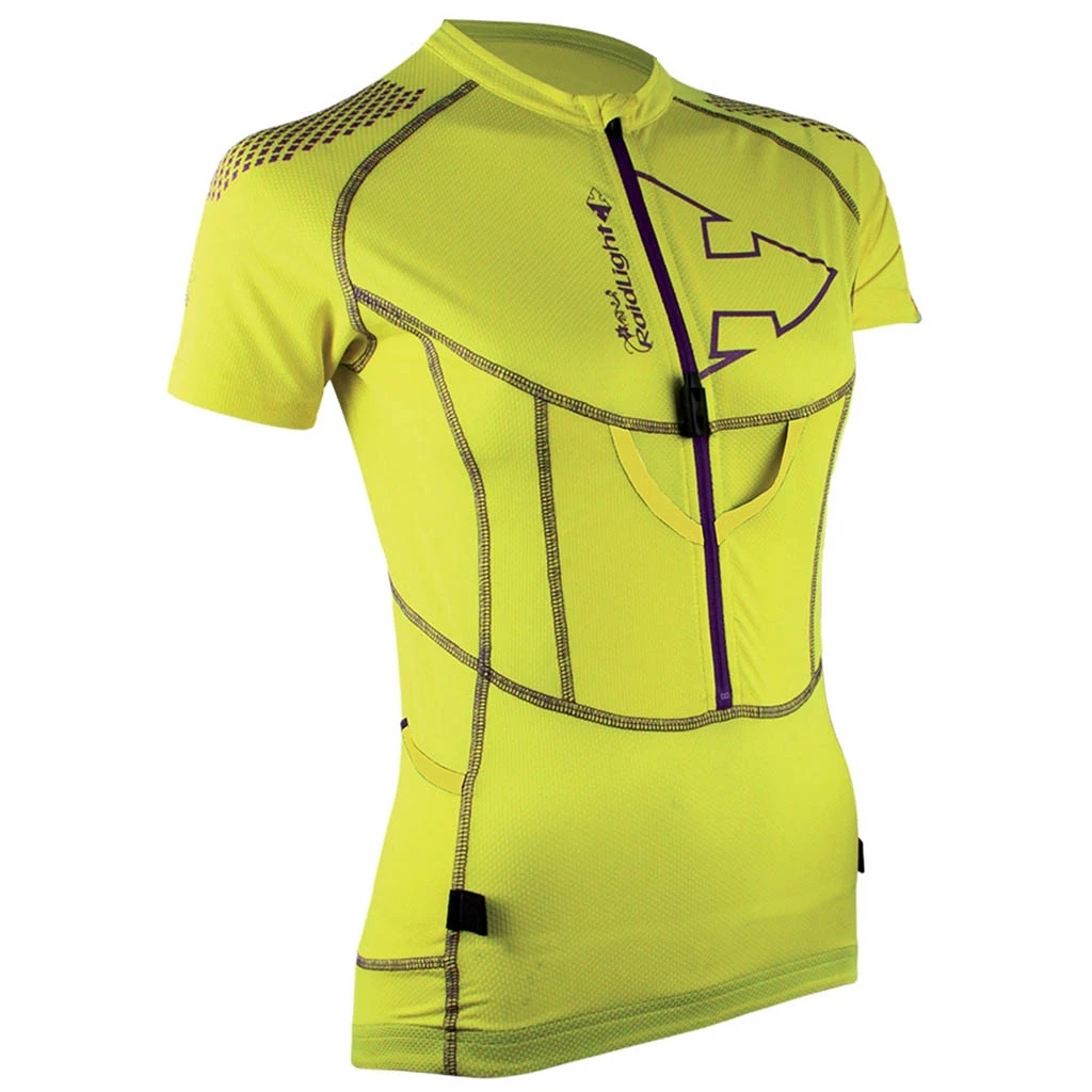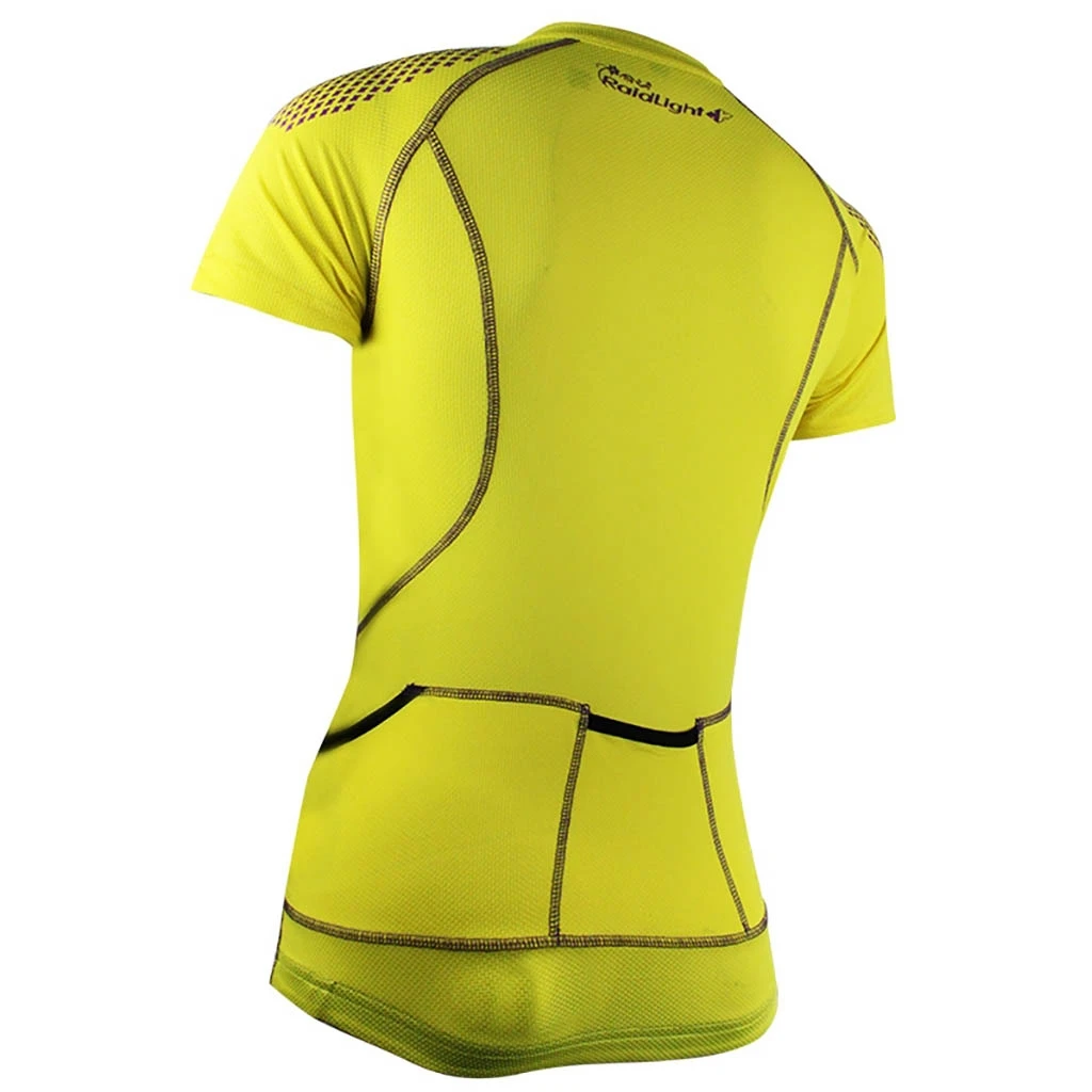 Le maillot pour femme RAIDLIGHT Maillot XP FIT 3D, présenté ici en coloris jaune, est un modèle à manches courtes, à la fois technique et innovant conçu pour la compétition et les sorties ultra-trails.